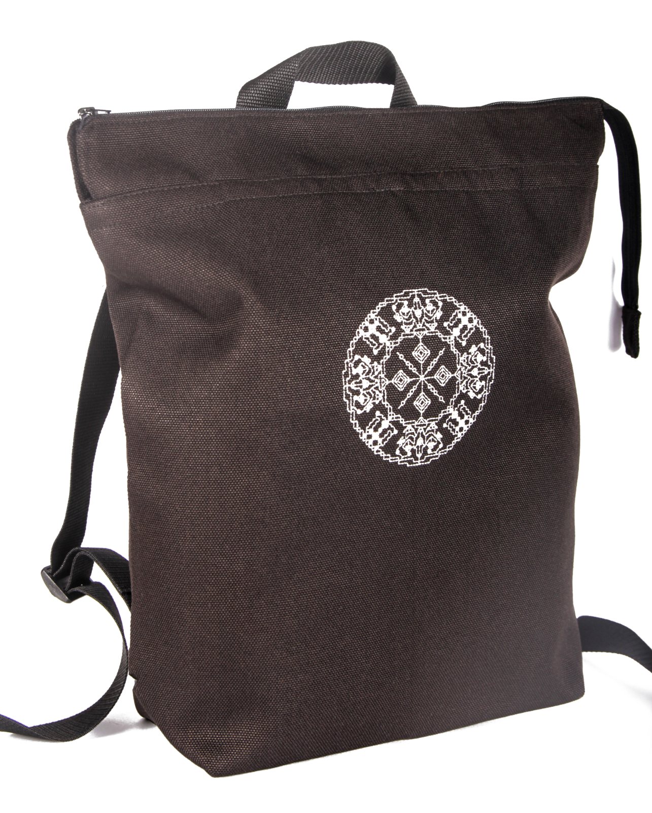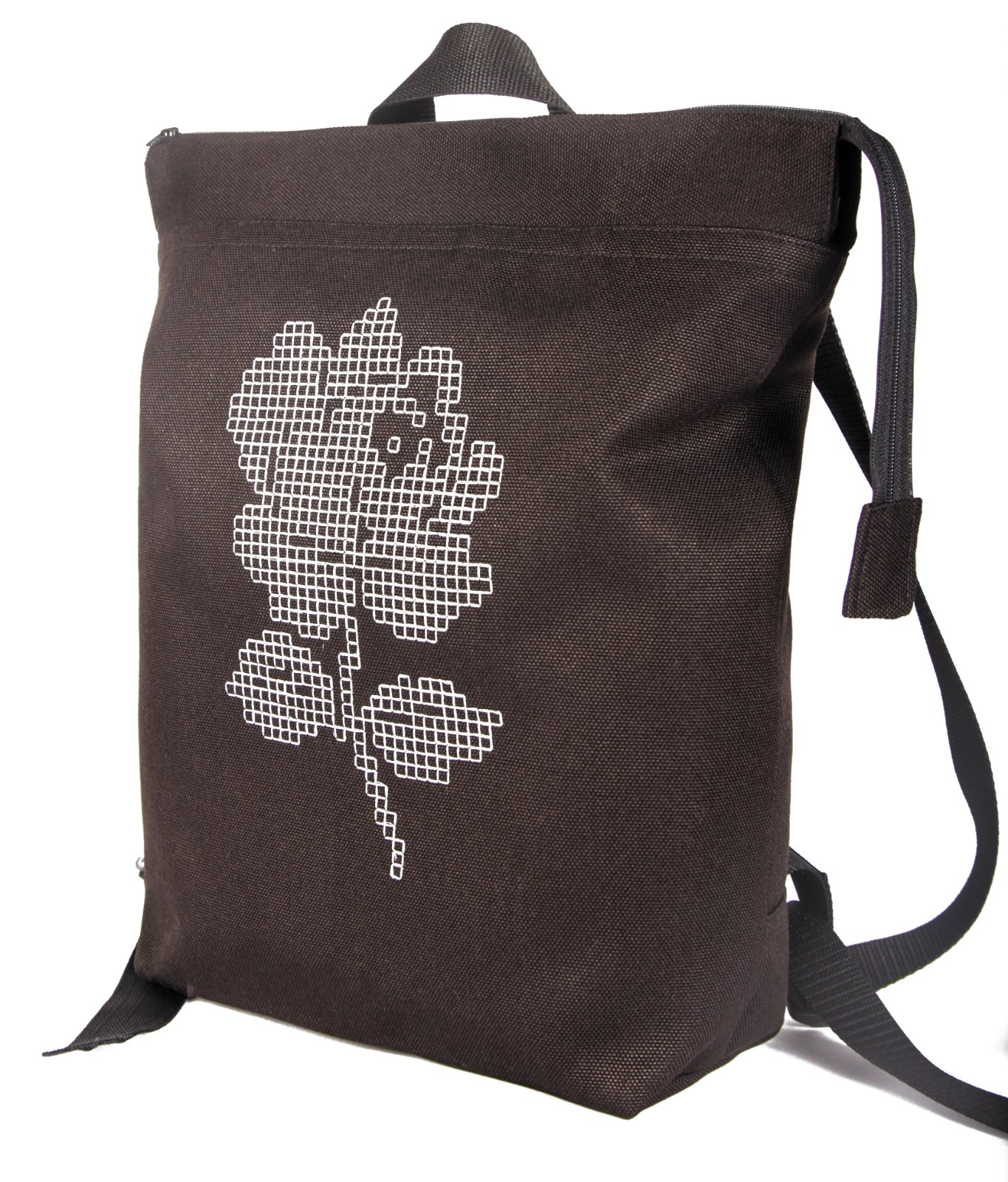 The bag is made out of strong polyester fabric, lined with polyester Inside polyester lining and zippered inner pocket measuring 20×10 cm. The design is embroidered with a reflective thread. This bag can be ordered as either a shoulder bag or backpack — please indicate which style of bag you’d like in the “Bag type” and “Bag Design” fields.