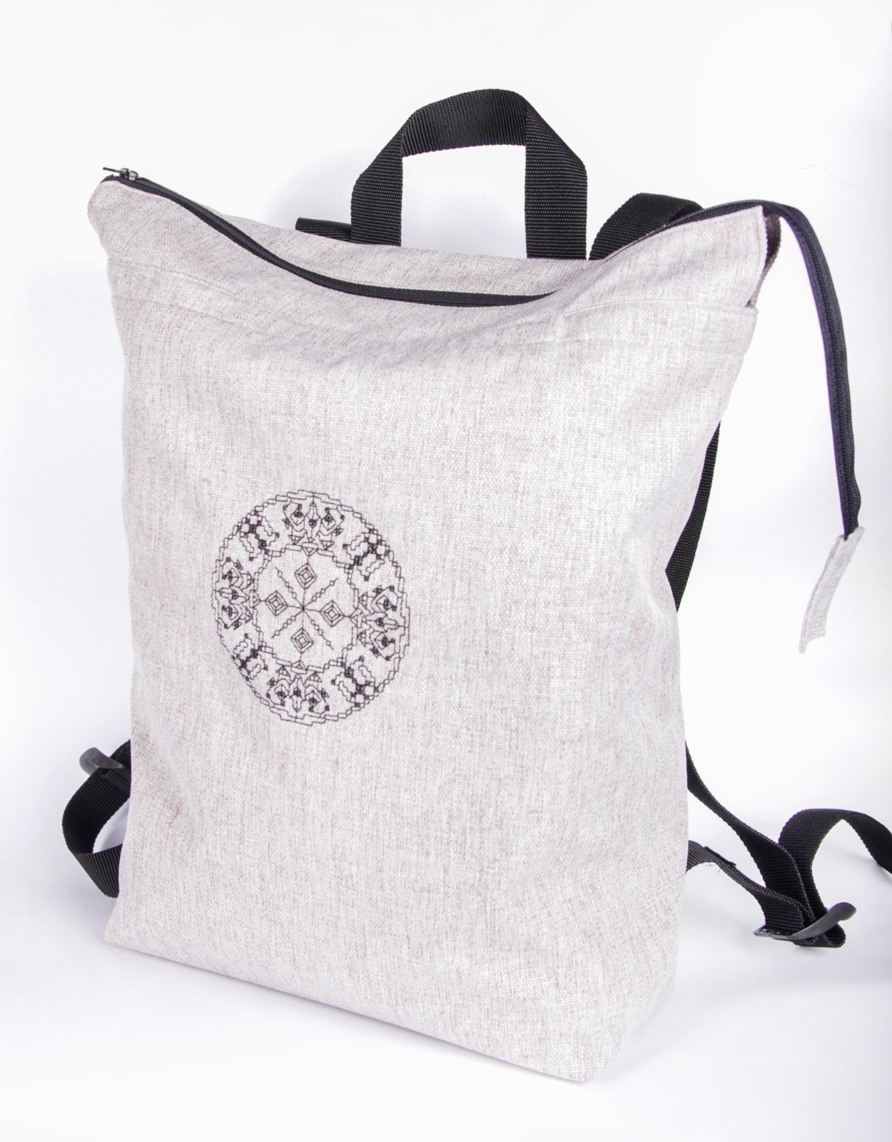 The bag is made of strong water-repellent fabric.. Inside polyester lining and zippered inner pocket measuring 20×10 cm. The design of the product uses a sieve motif. The bag can be ordered as both a backpack and a shoulder bag. Please make your choice in the “Bag type” box.